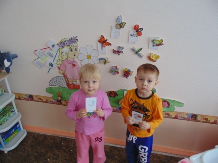 Познавательно-речевую деятельность мы организовываем в форме диалога, это приемлемый и результативный способ для нас. Используем вопросы, которые побуждают детей к сравнению, к установлению сходства и различия. Например, показываем детям зеленый мяч и зеленый кубик, спрашиваем, по какому признаку они похожи (по цвету), а какой признак у них разный (форма). Дети хорошо усвоили «тризовские» символы, с желанием выполняют задания с их использованием.