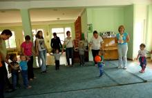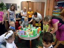 Далее все вместе родители, дети и педагоги отправляются на экскурсию по детскому саду. Ребенок, пройдя весь детский сад со своим родителем, осваивает вместе с ним новое для себя пространство, таким образом, оказавшись в этих же стенах, но уже без родителя, он воспринимает окружающую обстановку как уже знакомую и безопасную. Мы приходим с детьми в большой и прекрасно оборудованный для детей спортивный зал. Родители получают полезную информацию от инструктора по физической культуре, а дети играют. В заключении проводится совместная игра, которая помогает родителям и детям раскрепоститься, сбросить напряжение. У всех участников улучшается настроение. По такому же принципу совершается экскурсия в музыкальный зал, где педагоги рассказывают, как проходят музыкальные занятия, что необходимо приготовить, как проходят утренники, призывают родителей в будущем активно участвовать в подготовке к утренникам. В заключении проводится игра с музыкальным сопровождением. Игра проходит на общем жизнерадостном фоне. Затем все отправляются в гости к учителю-логопеду, который рассказывает взрослым, как и когда происходит набор детей в логопедические группы, дает важные рекомендации по развитию речи детей дома. Во время экскурсии родителям показывают медицинский кабинет, кухню, прачечную. Группа отправляется в кабинет педагога-психолога, родители видят, куда они могут прийти на консультацию, что есть в кабинете для занятий с детьми. Пока дети увлечены новыми игрушками, педагог-психолог рассказывает, с какими вопросами, как и когда можно обращаться, как проводятся занятия с использованием песочной и игровой терапии.