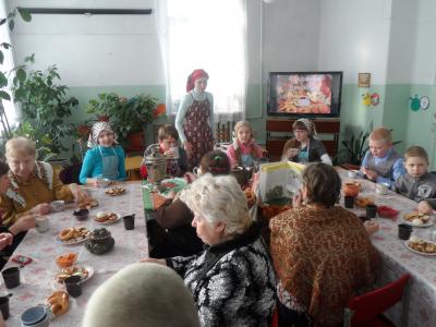 Затем девочки-помощницы помогали разливать травяные чаи из иван-чая, шиповника, черной смородины с мятой, клубники. Девочки учились быть гостеприимными хозяйками и ухаживать за гостями. Дети и взрослые поддерживали приятные беседы. Все мероприятие звучали песни о чае: русские народные и современные. Все чаепитие прошло в очень тёплой, по-домашнему уютной обстановке.