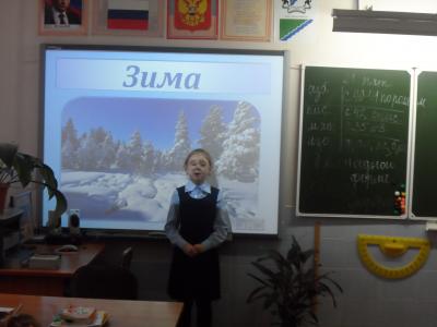 Очень интересно прошел час поэзии «Люблю природу русскую», дети подготовились к этому мероприятию, выучили стихи русских поэтов о природе. Весь урок проходил под слайд-ряд картин природы, начиная с зимы и заканчивая осенью. На каждое время года ребята просмотрели видео, под красивую музыку исполнялись стихи Ф. Тютчева, А. Плещеева, С. Есенина, М. Лермонтова. В завершение поэтического часа, ребята сделали вывод, что любить природу – значит любить Родину. Первоклассники сформулировали, что же значит любить родину: беречь, защищать, охранять. Дети составили из разрозненных слов пословицы о родине, прослушали стих С. Есенина «Гой ты, Русь, моя родная… », Ведерникова Арина прочитала стих Ф. Савиных «Родина».