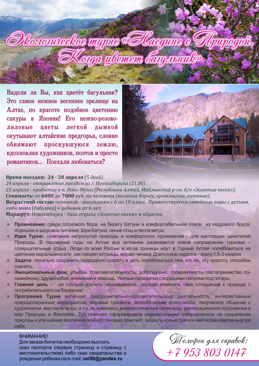 Экологическое турне «Наедине с Природой. Когда цветет багульник» приглашает всех желающих 25-26-27 апреля на Алтай.