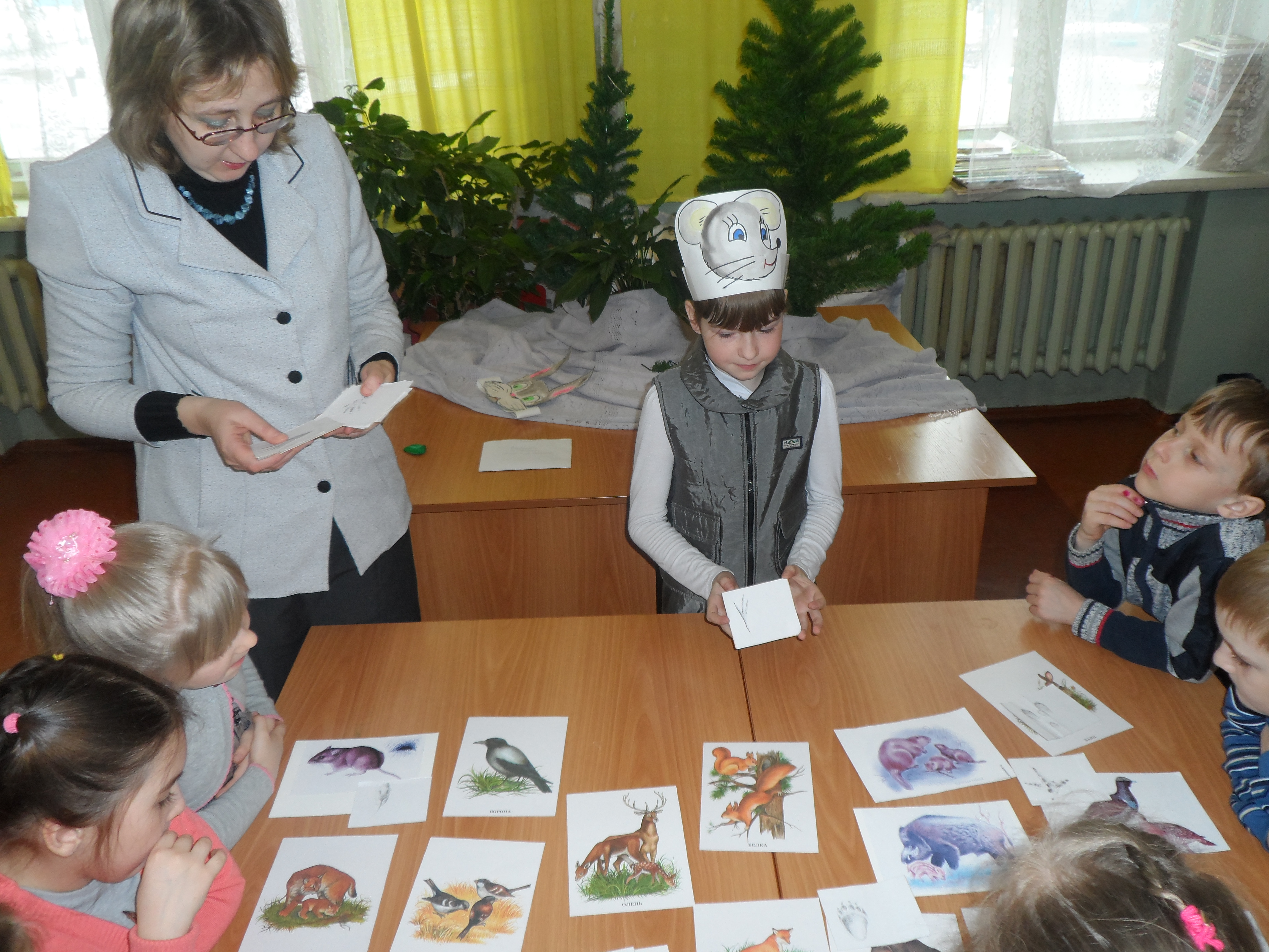 28 марта прошла заключительная игра «Лесные приключения». Игра проводилась в несколько этапов, которые выглядели в виде путешествия по временам года. Началом путешествия стала весна – игра «Птичье дерево» очень понравилась ребятам, им необходимо было отгадать загадку, найти птицу на картинке и определить ее в гнездышко на дереве. Летний этап назывался «Лукошко», здесь ребят встречала Лисичка-сестричка, и она загадывала съедобные загадки, а дети находили ягоды и грибы на лесной полянке. Во время осенней игры ребята нашли листики со всех деревьев («Листопад») и каждой птичке нашли гнездышко («Чей домишко»). Зимний этап был очень сложным, проводил его Мышонок Пик, в игре «Следы» каждому животному нужно было найти его отпечаток на снегу и сказать Мышонку друг это ему или враг. В игре у Лыткиной П. В. были помощники, девочки из клуба «Затейники» (руководитель Гриднева М. В.), они помогли обыграть зверушек и сделали игру еще более интересной и запоминающейся.