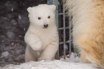 Первый «выход в свет» белого медвежонка из Новосибирска