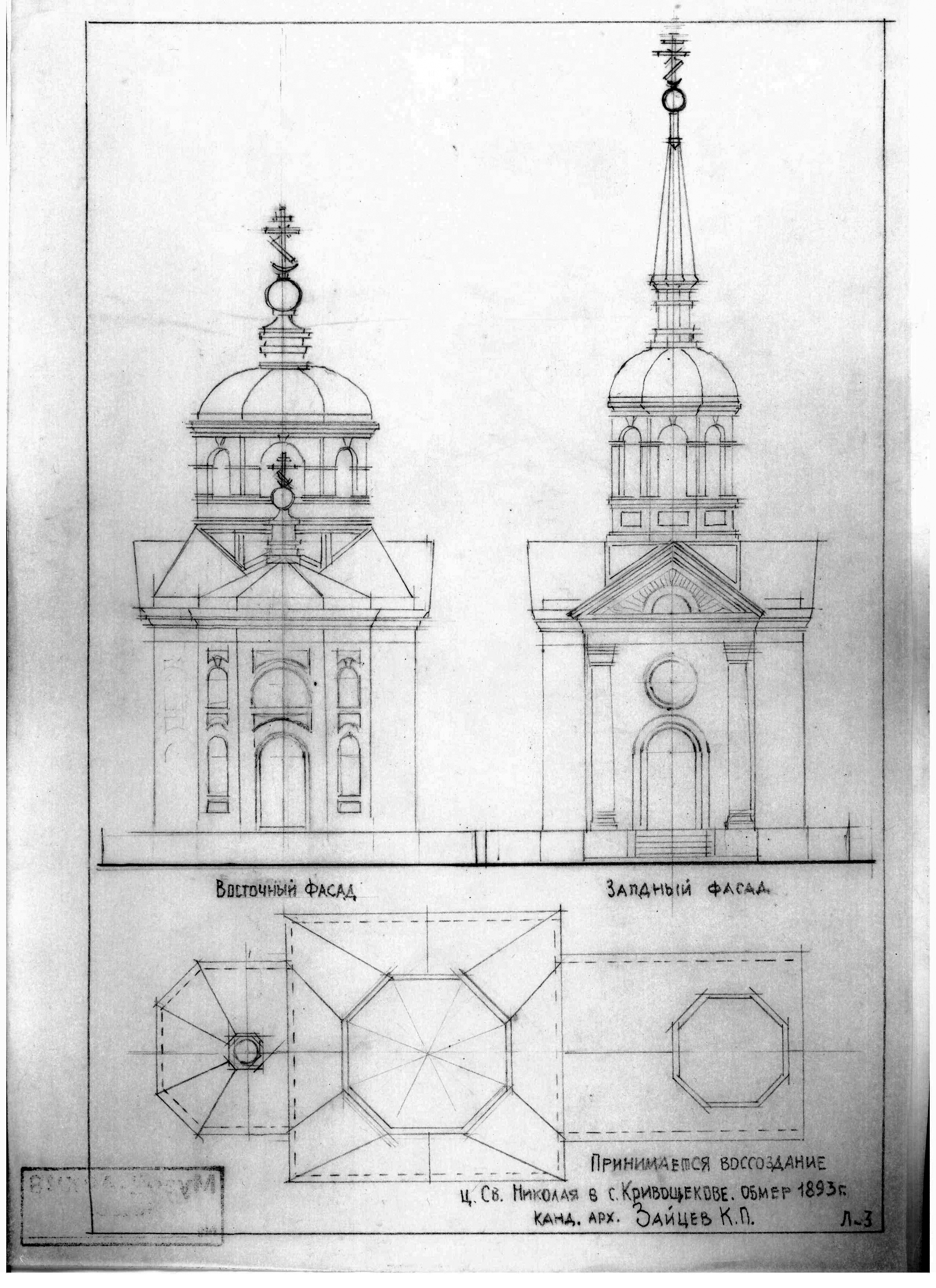 Копии обмеров Никольской церкви (архив К.П. Зайцева, фонды Музея им. С.Н. Баландина) |