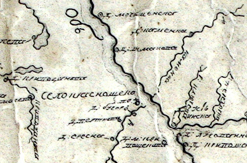 Село Краснощёково. Фрагмент карты XVIII века.