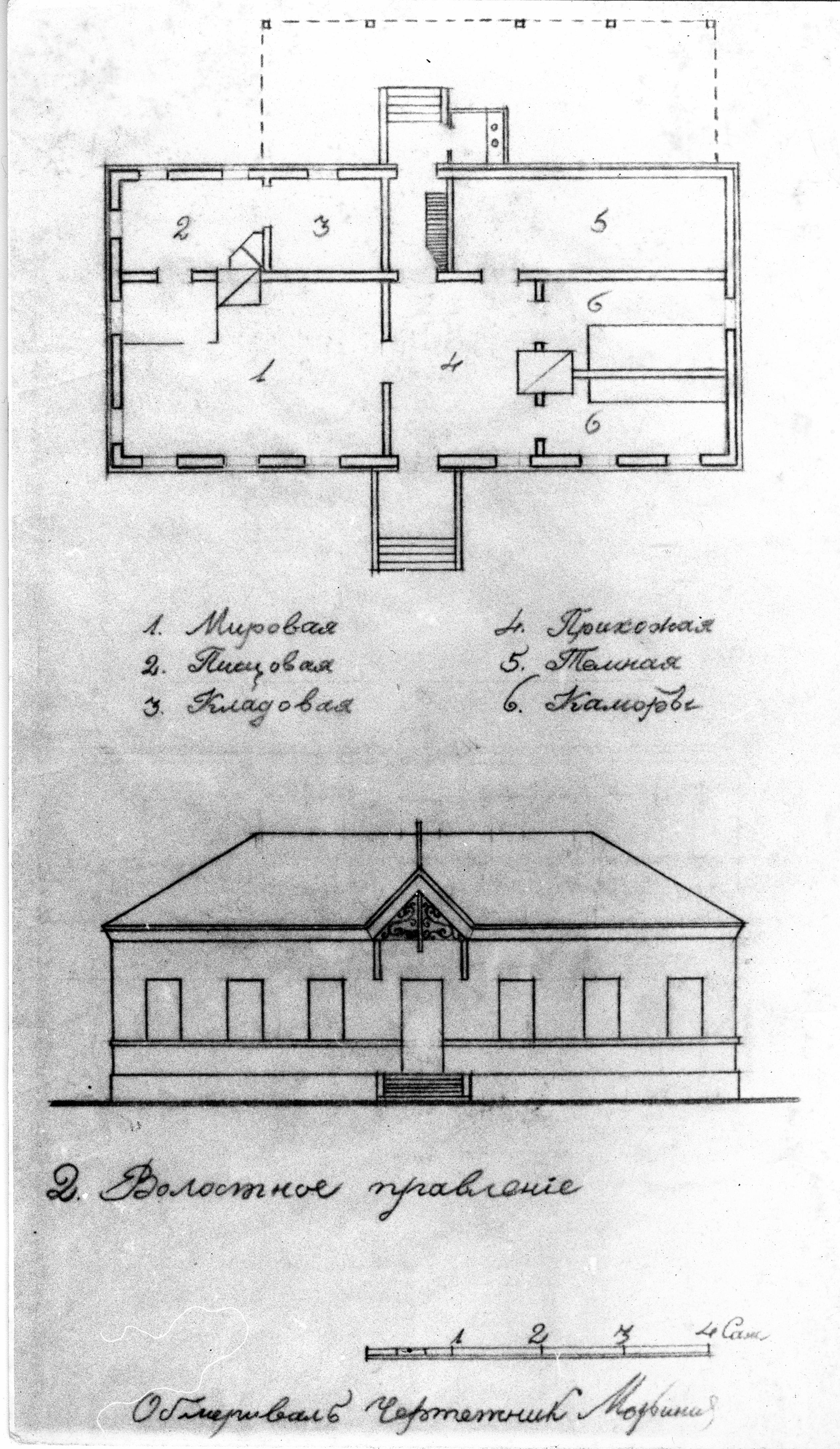 План-чертёж волостного правления (архив К.П. Зайцева, фонды Музея им. С.Н. Баландина) |