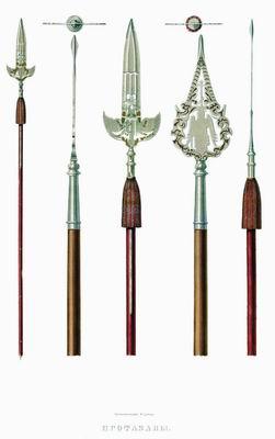 Е) копье с плоским и длинным наконечником, насаженным на древко;
