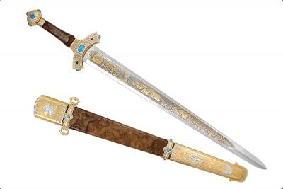 Б) старинное холодное оружие в виде обоюдоострого длинного прямого ножа с рукояткой;