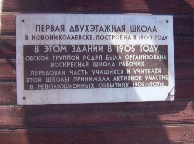 Обратите внимание, читаем: ПЕРВАЯ ДВУХЭТАЖНЯ ШКОЛА В НОВОНИКОЛАЕВСКЕ! Построена в 1900 году. То есть 110 (СТО ДЕСЯТЬ) лет тому назад! Можно с большой уверенностью сказать, что школа появилась тогда, когда ещё не было самой улицы Владимирской. Имелось в виду, что она была второй школой после открытой в 1893 г. на средства Г.М. Будагова первой, одноэтажной на улице Трактовой.