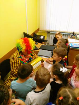 Организовывать деятельность детей в ходе игры помогает отрицательный герой (Клякса) и положительный герой (клоун Клёпа). Задания детям даются как на экране телевизора, в виде презентации, так и в устной форме. Следы, по которым детям приходится идти и находить задания, расположены в группе, на лестнице и в холле детского сада в виде больших чёрных клякс. Выбирая правильную последовательность клякс, дети двигаются в правильном направлении, находят задание и выполняют его.