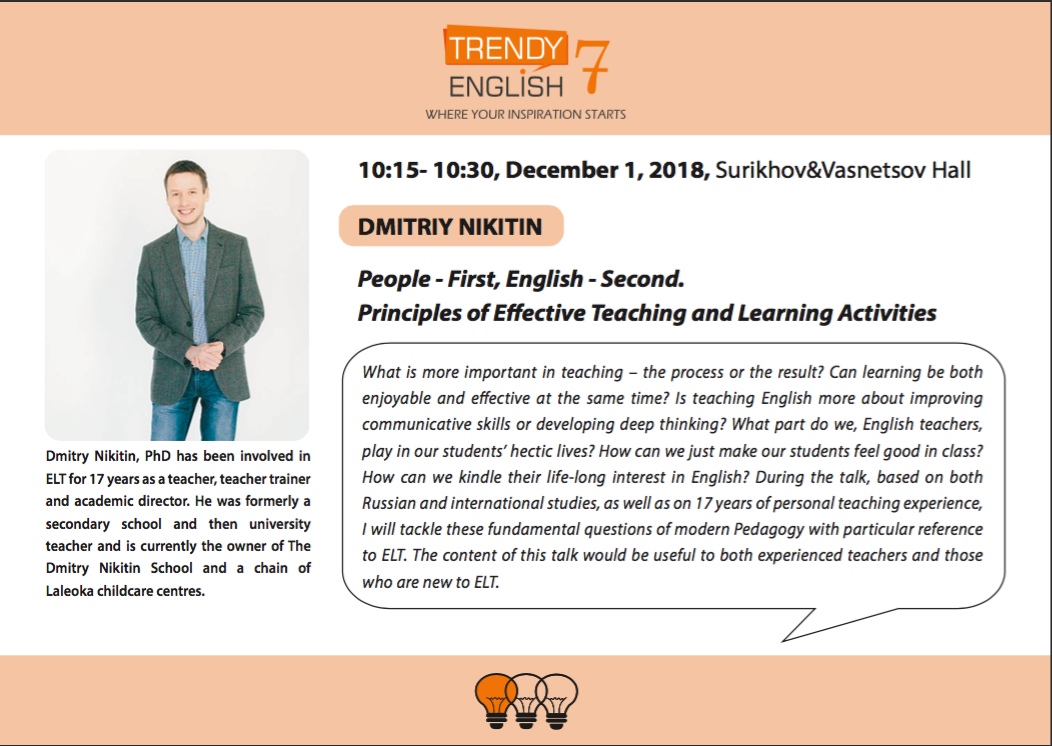 «People First, English Second» – это название выступления Дмитрия Никитина (vk.com/dmitrynikitin).