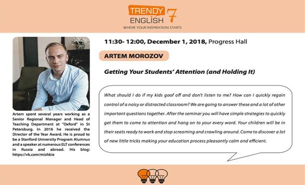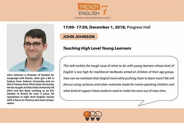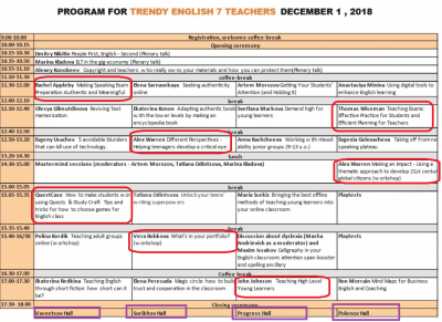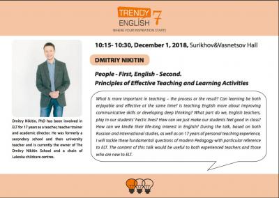 Чтобы обеспечить высокое качество преподавания, надо быть в курсе всех современных методик и приемов, поэтому мы не могли пропустить важное для нас событие – международную конференцию для учителей английского языка Trendy English 7, которая проходила 1-2 декабря 2018 года в г. Москве в гостинице Вега (Измайлово).