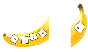 Смотрите, на бананах какие-то примеры, нужно посчитать и найти правильный ответ. И тогда бананы станут целыми.