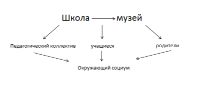На сегодняшний день школьный музей играет важную роль в организации работы с учащимися и их родителями, является центром дополнительного образования учащихся в направлении гражданско-патриотического и культурно-нравственного воспитания. Современная система образования отражает мировые процессы глобализации общества. Одной из глобальных тенденций выступает социальное партнерство на уровне определенных социальных институтов как взаимно заинтересованных в сотрудничестве, в частности, школы как социального института и музея как социально-культурного учреждения.