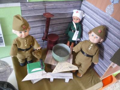 Экспонаты – куклы в военной форме, изготовила мама Даши Повлось – Анна Владимировна. Она сшила уменьшенную копию военного костюма пехотинца времен Великой Отечественной войны.