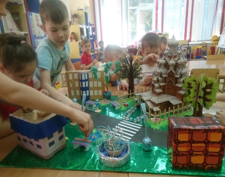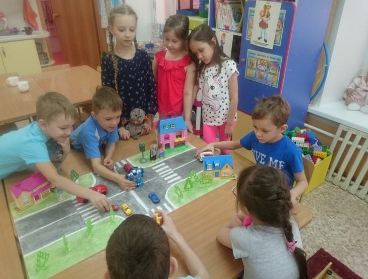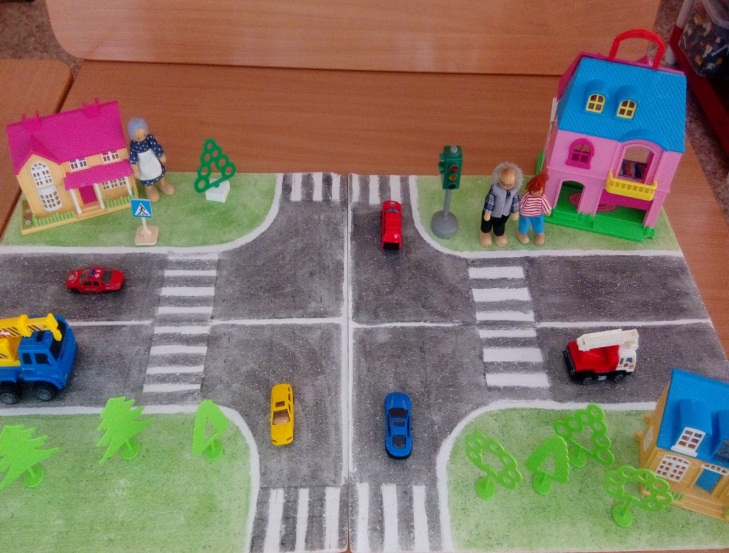 – Макет перекрестка (где дети во время игры знакомятся с разными видами транспорта, узнают, что такое «разделительная линия», «зебра», знакомятся с сигналами светофора, с понятием одностороннее, двустороннее движение).