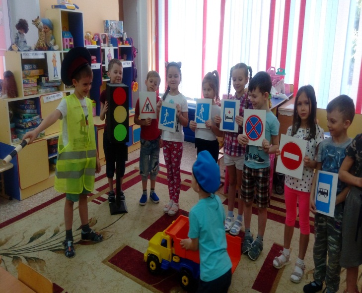 Мы систематически проводим мероприятия, которые направлены на профилактику детского дорожно-транспортного травматизма. Это тематические беседы, конкурсы, викторины, досуги, экскурсии, развлечения, в которых родители вместе с детьми принимают активное участие. В своей работе мы используем разнообразные методы и приемы. Но игру для детей не заменишь ничем. Играя, дети усваивают основные правила, понимают, кто такой регулировщик, водитель, пешеход и т.д. Поэтому в нашей группе был создан уголок безопасности «Воспитаем грамотного пешехода», где развивающая предметно-пространственная среда по ознакомлению детей с ПДД включает в себя: