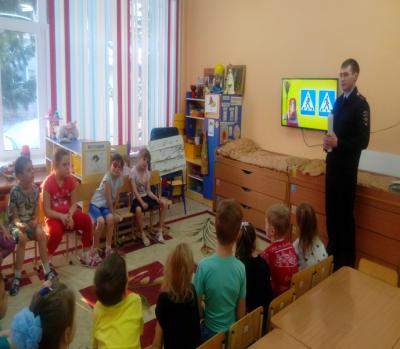 Также совместно с сотрудниками ГИБДД инспекторами по пропаганде детского дорожно-транспортного травматизма проводим профилактические беседы, занятия, в ходе которых для ребят были показаны циклы обучающих мультфильмов по правилам перехода улицы в положенном месте, рассмотрены виды переходов и светофоров и основные правила дорожного движения для пешеходов.