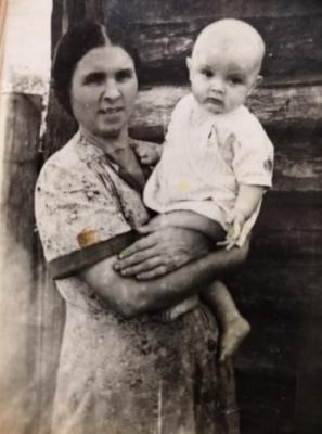 Сказать, что путь был невыносимо трудным – будет мягко для той ситуации. Анастасия Герасимовна рассказывает: «Взять позволили немного одежды и еды. До станции Черепаново везли на лошади, под проливным дождем. Затем в грязных “грузовых” вагонах до станции Черемушки Томской области. Потом на барже до Парабели. А оттуда еще 120 километров в тряской бричке до села Большешироковское Старицинского сельсовета. Грудное молоко, конечно, пропало. В редких деревнях удавалось выменять какую-то тряпку на крынку коровьего молочка. Местные жалели, но сами голодали. Поэтому кормила ребенка в основном размоченными сухарями». Мокрые детские пеленки молодая мамочка сушила, оборачивая на ветру, под холодным дождем, вокруг собственного тела. Когда путь закончился, начались новые, еще более страшные круги ада: высадили «в чистом поле», правда, было уже несколько землянок горемык, прибывших раньше. Как устраиваться? Как ребенка согреть? К счастью, встретила семью Скурихиных – земляков, высланных из Большого Изырака. Те поделились теплом своего убогого жилища, приютили на время, пока «обустроится». Дали лопату, ведро, топор. Помогли соорудить землянку, сбить из глины печку, заготовить хворост. Вскоре Анастасию разыскал отец, Герасим Петрович Огнёв. Он, подобно моим родственникам, прибыл туда добровольно, понимая, что всё равно сошлют. Помог продуктами, спичками, солью. Соседи по несчастью поделились капустой. Всю зиму перебивались отваром из капусты. Но Ванечка был сильно истощен, до весны не дожил…