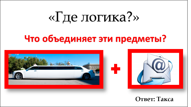 «Где логика?» Основа взята из телешоу «Где логика». На экране появляется какой-то ряд фотографий и участникам необходимо убрать лишнее, понять, что объединяет все фото и так далее.