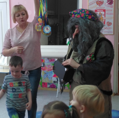 Баба Яга: Здравствуйте, ребята! Ну что тут скажешь… молодцы. Вы такие смелые, ловкие, быстрые и умные!!! Нашли всех героев из сказки и даже никого не испугались! А за то, что вы хорошо постарались и пришли вовремя, не задержались ни одной минутки, держите за это приз. Вы настоящие герои!!!