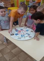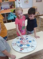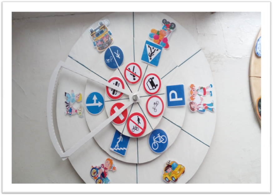Детям необходимо по очереди раскручивать стрелку и круги, объясняя возникшие дорожные ситуации.