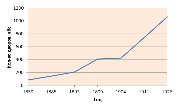 Рис. 2. Историческая динамика количества дворов в Корнилово