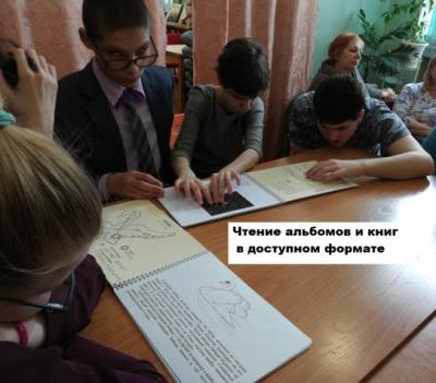 Огромное значение придается сейчас реализации государственной программы «Доступная среда» для инвалидов. В нашей библиотеке налажено тесное сотрудничество со школой-интернатом незрячих и слабовидящих детей. При участии сотрудников областной специальной библиотеки, студентов-волонтеров педуниверситета, читателей-выпускников школы-интерната проводятся мероприятия, на которых можно опробовать в работе различные приборы и тифлотехнические средства, посмотреть книги и альбомы в доступных форматах.