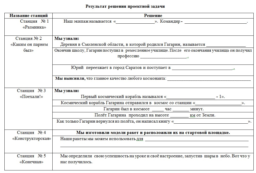 3. Не забывайте вести записи в специальном документе «Результат решения проектной задачи». Например: