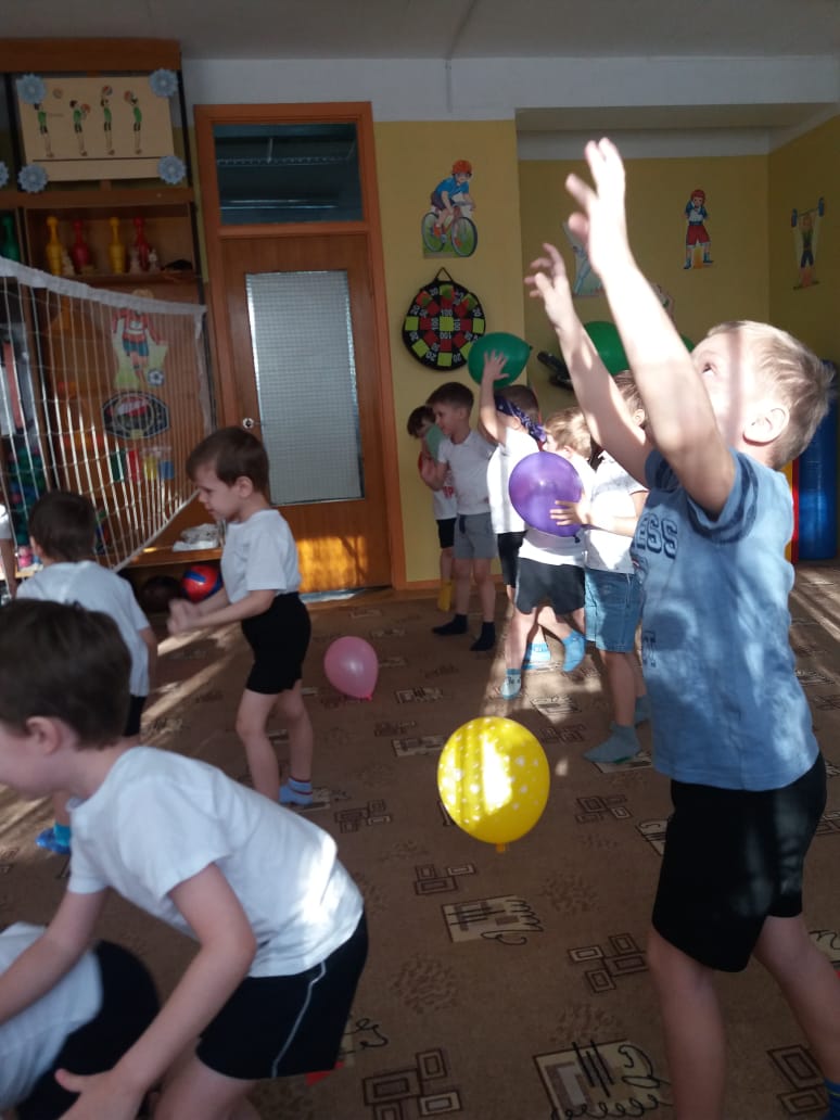 Оборудование: воздушные шарики, хоп-боллы с ручками, резиновые мячи разного диаметра, бумажные мячи, волейбольная сетка, канат, кегли, дуги для подлезания.