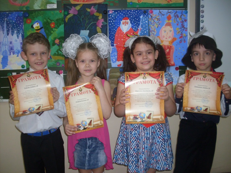 В течение года я разрабатываю множество интеллектуальных турниров, конкурсов, марафонов, состязаний, чтобы расширить их познавательный кругозор, повысить их мыслительную активность, приобщить к поискам всевозможной информации, успешно выступить в интеллектуальном конкурсе. Как итог этого учебного года – победа в районной интеллектуальной игре «ЗАPRO100» среди учеников вторых классов.