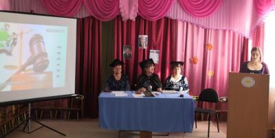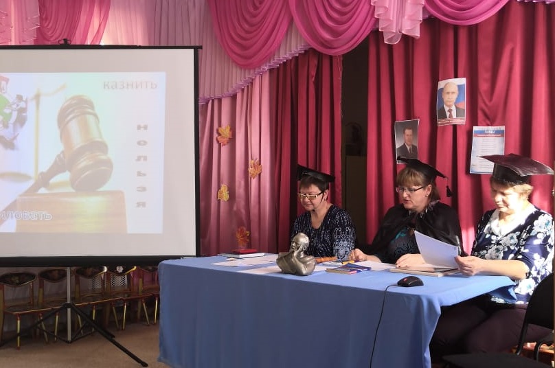 Роли были распределены между членами администрации и педагогов ДОУ: заведующий детским садом исполняла роль судьи, педагоги-стажисты выступили в роли присяжных заседателей, старший воспитатель – в роли независимого эксперта, педагог-психолог – свидетеля, все педагоги разделились на две группы и выступили в роли обвинителей (коллегия прокуроров) и адвокатов (адвокатская коллегия).
