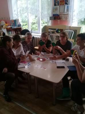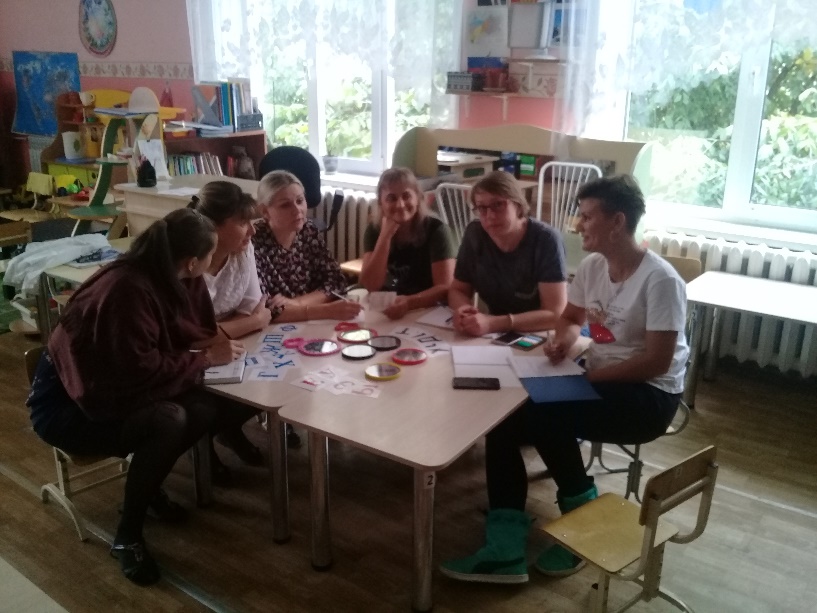 Специалисты ДОУ акцентировали внимание на индивидуальном подходе к каждому ребёнку при коррекции речевых нарушений, рассказали о том, как необходимо работать на автоматизацию звуков речи по рекомендациям учителя-логопеда; обсудили вопросы по развитию крупной и мелкой моторики, поговорили о разных видах упражнений, играх на крупную и мелкую моторику пальцев рук и подготовки руки к письму для будущих первоклассников; выполнили несколько упражнений на крупную и мелкую моторику; специалисты продемонстрировали наглядный материал, пособия с разными играми и упражнениями, которые можно применять в работе с детьми с особыми образовательными потребностями. А также изготовили совместно с воспитателями игровые пособия для детей на автоматизацию звуков в речи, развития фонематического восприятия, развития пространственного ориентирования и т.д. Рассмотрели вопрос о развитии фонематического восприятия звуков речи, формирование лексико-грамматической стороны речи, связной речи.