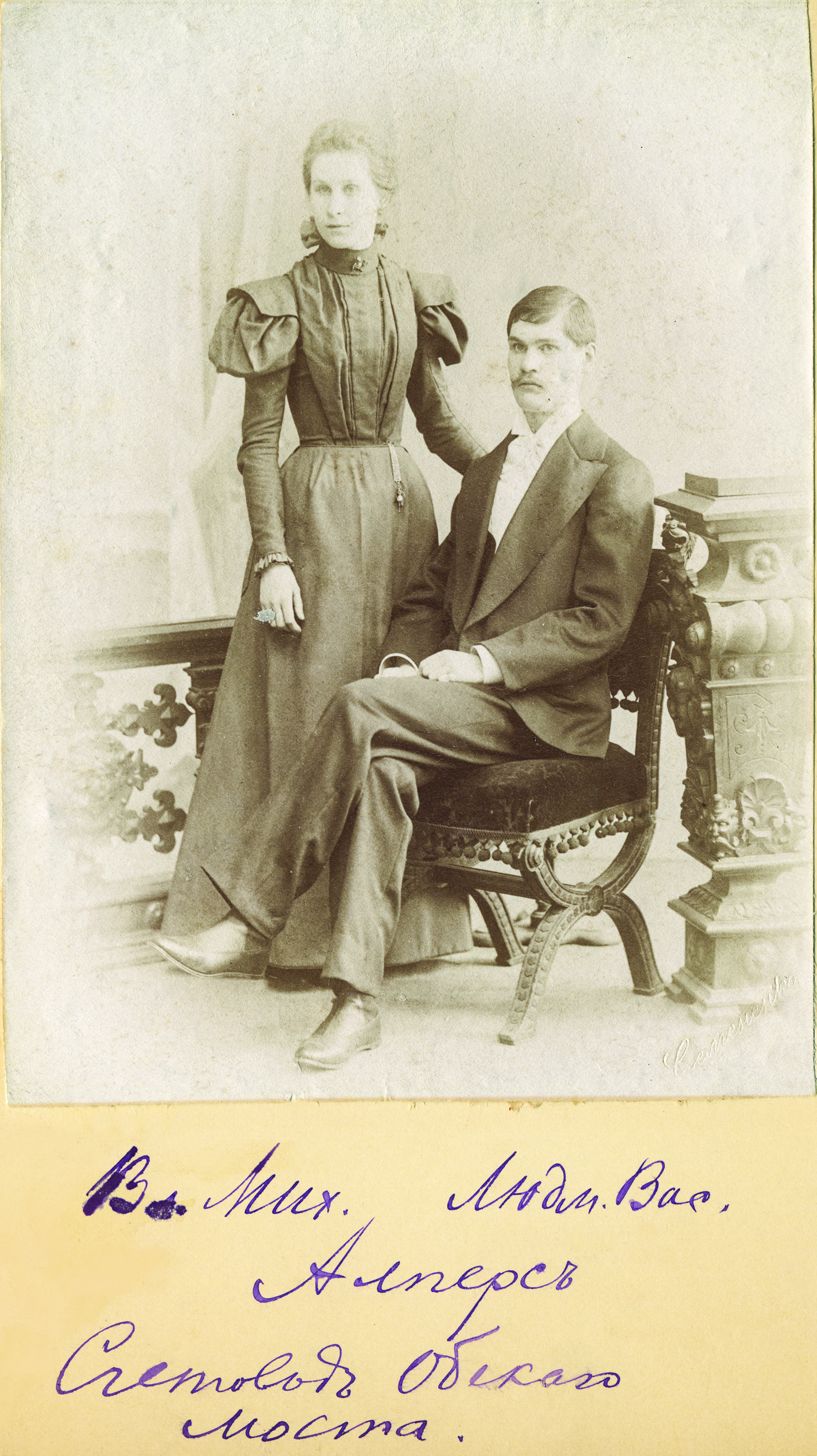 Людмила Васильевна Алперс (с большим белым бантом) и её супруг Владимир Михайлович Алперс (1863 г.р.). Фамилия, конечно, очень именитая.