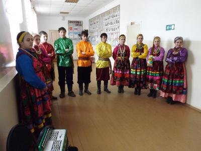 На размещенных здесь современных фотографиях представлен общий вид села Хасурта, один из его уголков и школьники – члены здешнего семейского фольклорного ансамбля.