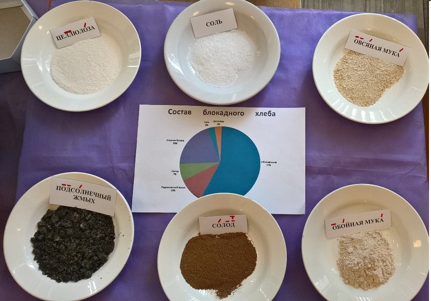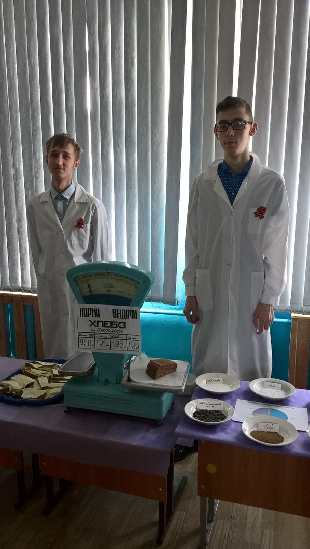 Затем провели реконструкцию, где наглядно показали состав хлеба блокадного Ленинграда и рассказали о норме выдачи хлеба на человека в те страшные дни голода. Ребятам показали так называемые хлебные карточки и рассказали, зачем они были нужны. После демонстрации обучающимся выдали такие же карточки и предложили получить суточную норму хлеба на человека. Образовалась длинная очередь за хлебом, что совсем непривычно для людей в наши дни… Каково же было удивление ребят после взвешивания от того, какой маленький кусочек, и что его нужно было распределить на весь день. Ведь хлеб = жизнь в блокадном Ленинграде.