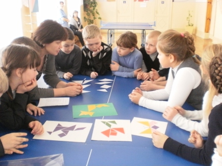 В новом учебном году я решила разработать программу кружка «Весёлый танграм», провести мастер-класс для педагогов школы «Использование головоломки «Танграм» для повышения мотивации учащихся к обучению и вовлеченности их в образовательный процесс», смотивировать всех учащихся и педагогов начальной школы на геометрические состязания, используя танграм.