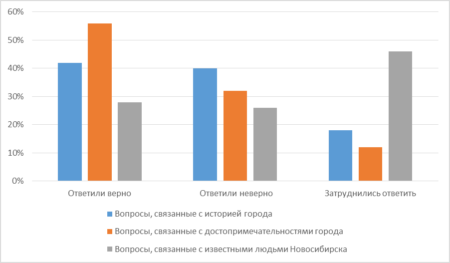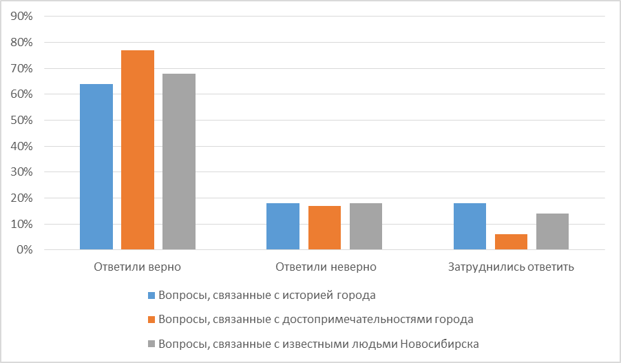 Свою работу мы начали с проведения анкетирования «Знаешь ли ты Новосибирск?». Анкета состояла из 15 вопросов по истории, достопримечательностям и известным людям города. В анкетировании приняли участие 80 учащихся 2-4 классов.