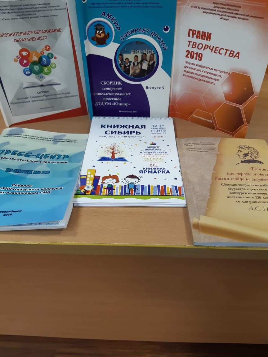 На выставке представлены материалы, отражающие деятельность ДТД УМ «Юниор» с одарёнными детьми по всем 6 направленностям дополнительного образования. Также Дворец творчества принял участие в открытом межрегиональном конкурсе, который проходил в рамках фестиваля. «Книга года: Сибирь – Евразия» – 2019», предоставив на конкурс пять научно-методических сборников по дополнительному образованию, изданных ДТД УМ «Юниор» в 2019 году и стал призёром этого конкурса в номинации «Лучшая учебная книга».
