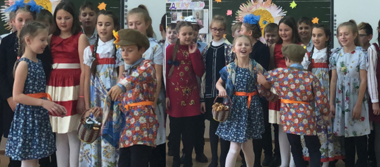 Почти все ученики моего класса посещают учреждения дополнительного образования. А значит, есть и певцы, и музыканты. Праздник украсили русской народной песней «Семечки» и игрой на аккордеоне.