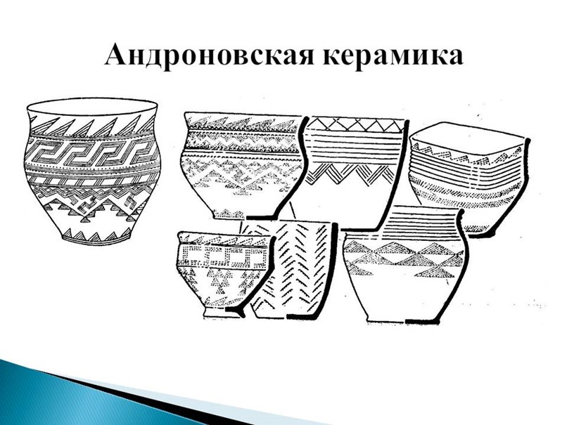 После нанесения орнамента, педагог демонстрирует на слайде № 4 андроновскую керамику.