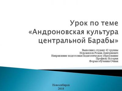 Цель занятия: формирование представления обучающихся об андроновской культуре центральной Барабы.