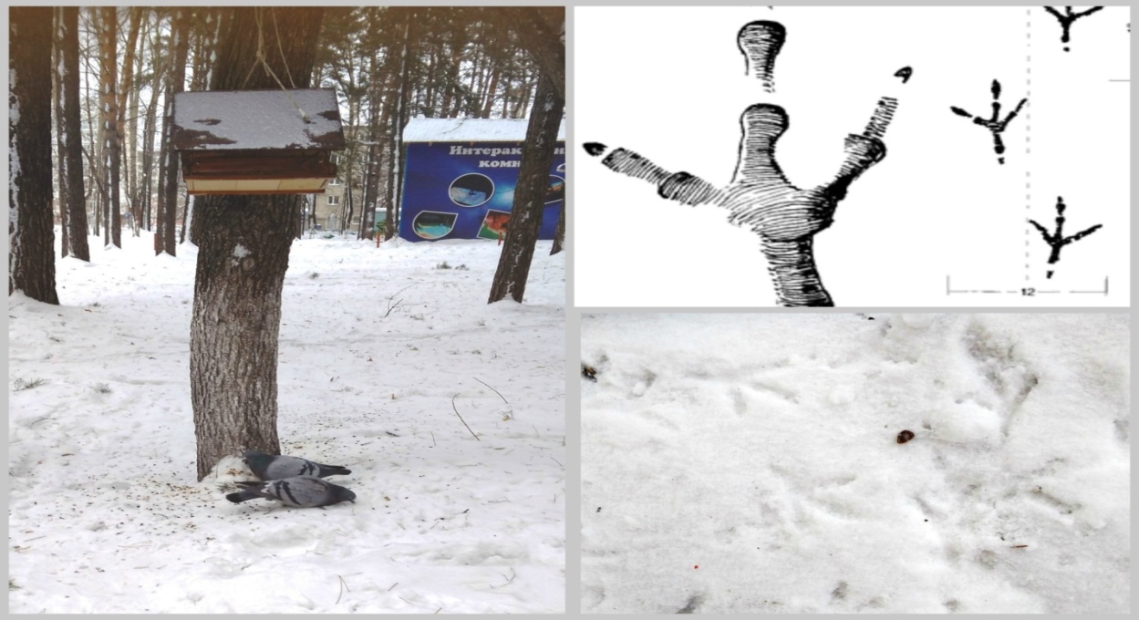 Первую экскурсию в ПКиО «Первомайский» я провожу после первого снегопада. В этот период нам с учащимися удается обнаружить много сизых голубей недалеко от кормушек в парке. Отмечу, что мы с ребятами ведем регулярные наблюдения и следы находим ежегодно. Обращаю внимание детей на походку птиц, которая весьма характерная – короткие шаги идут цепочкой. Если набраться терпения, то можно увидеть и появление самих голубей, которые с удовольствием клюют семечки под кормушкой. Такие интересные моменты ребята стараются зафиксировать на фотоаппарат, а затем использовать в своих исследовательских проектах и дневниках наблюдений.