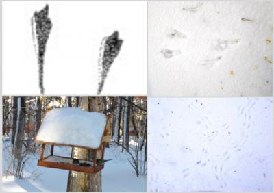 В ПКиО «Первомайском» нам с ребятами нередко удается сфотографировать следы синиц. Следы представляют собой короткие прыжки на снегу под деревом. Как и у других птиц, лазающих по деревьям, три передних пальца у синиц тесно сжаты, поэтому передняя часть следа почти единое целое. Гуляя по парку, мы часто видим и самих синиц в кормушке.