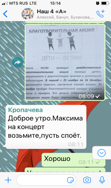 Для полноценного информирования родителей данные о готовящихся акциях были размещены в родительских чатах WatsApp. Эти чаты имеются в каждом классе и представляют собой площадку для свободной дискуссии родителей с учителем и между собой. В ходе обсуждения родителями были высказаны предложения по проведению акций. Эти предложения были приняты.