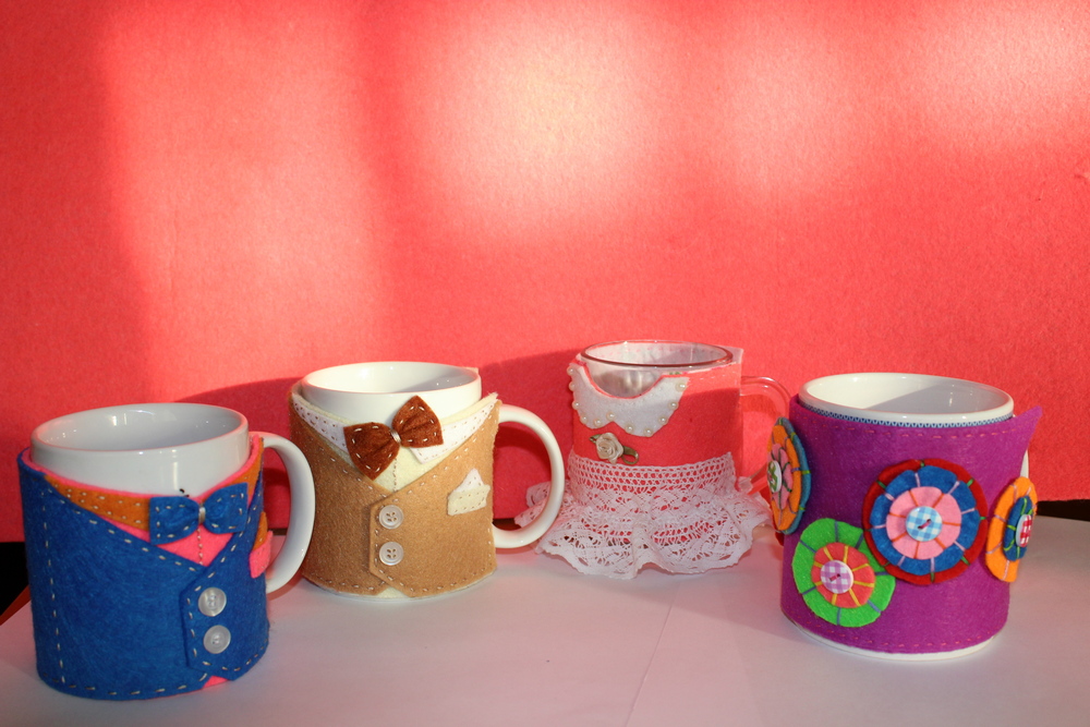 Костюмчики для кружек могут быть самые разные! Форма, цвет, стиль – все зависит от вашей фантазии. К каждому празднику можно придумать подходящий вариант. В любом случае получится оригинальный, полезный и душевный подарок!