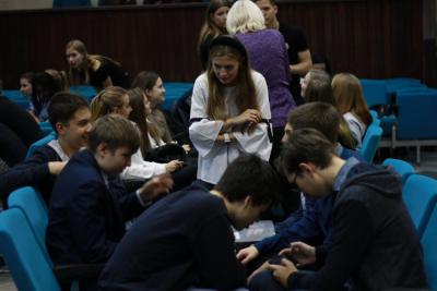 «Медиаполис: в эпицентре развития критического мышления» – именно так называлась деловая игра для старшеклассников, которая прошла в рамках проведения старт-сессии Новосибирских научных обществ учащихся «Сибирь» 18 октября 2019 года в концертном зале Дворца творчества детей и учащейся молодежи «Юниор». Игра организована специалистами отдела научного творчества и интеллектуального проектирования ДТД УМ «Юниор» (руководитель отдела – Татьяна Викторовна Бодня) при участии руководителя сектора медиаобразовательных проектов Дворца творчества Ирины Валерьевны Калининой и команды преподавателей и студентов кафедры журналистики Новосибирского государственного педагогического университета (заведующая кафедрой – Елена Вениаминовна Евдокимова) под руководством автора игры, кандидата наук, доцента, тьютора образовательной программы «Педагогическое образование. Медиаобразование» Ирины Геннадьевны Катеневой.