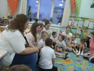 Каждое утро в группе мы проводим «Утренний круг», где ребята, сидя в кругу на подушках, ковриках приветствуют друг друга, делятся новостями. Такая обстановка помогает ребенку адаптироваться в детском коллективе, почувствовать, что: «Я нужен!», «Меня слышат». Дети получают положительные эмоции от общения друг с другом. Иногда в «Утреннем круге» участвуют родители.