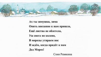 В результате, собрав все стихи наших воспитанников, мы создали в группе книгу «Сборник стихов группы «Земляничка» «Времена года»» и дополнили ее детскими рисунками-иллюстрациями. Получилась очень яркая, интересная книга, которую мы с детьми с удовольствием читаем и перечитываем. В планах на будущее у нас издание еще нескольких книг со стихами: «Для любимой мамочки», «Мой четвероногий друг» и «Мой любимый вид спорта». Предлагаем вашему вниманию несколько детских стихов из сборника «Времена года».