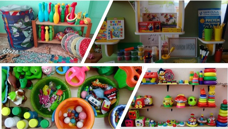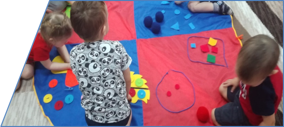 Для развития предметной деятельности и сенсомоторных способностей была выделена зона сенсорики. Подобраны игрушки и пособия, различные по цвету, форме, фактуре и материалу, из которого они сделаны. Малышам предлагали различной сложности пирамидки, матрешки из двух-трех частей, различные вкладыши, прищепки основных цветов, игрушки-шнуровки разного вида, настольные печатные игры. Особенной популярностью у детей пользовалась напольная дидактическая игра сенсорный – дидактический коврик. Это пособие для сенсомоторного развития: умение застегнуть и расстегнуть пуговицу и замок, липучку, достать понравившийся объект по цвету, форме из определенного кармашка, прикрепить его, снять, убрать на место. Играя с ковриком дидактических игр, дети научились соотносить и группировать предметы по цвету, форме, величине, количеству, фактуре. Такие игры доставляли удовольствие, помогали облегчить малышам процесс привыкания к детскому саду.